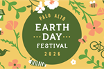 Earth Day Festival 19 Apr 2026 Think globally, connect locally, and act together at this year's sustainability and climate action festival. Celebrate the earth and find ways you can make an impact. Palo Alto Art Center, 1313 Newell Road, Palo Alto, CA 94303 Tagged as: , City Sponsored Events, Community Events